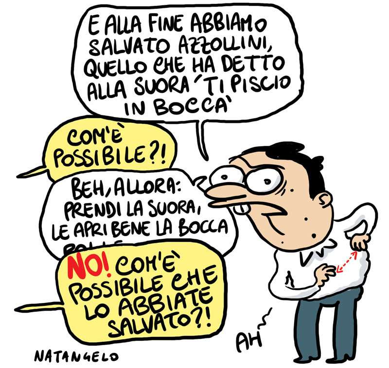 Grande…anche io per un momento mi chiedevo come si fa a pisciare in bocca a una suora!! 😀