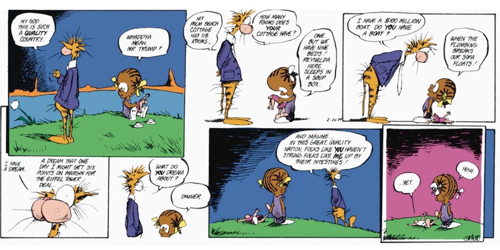 Avevo scordato di menzionare che ad un certo punto, verso la fine di Bloom County, il cervello di The Donald era stato impiantato nella testa di Bill il Gatto…