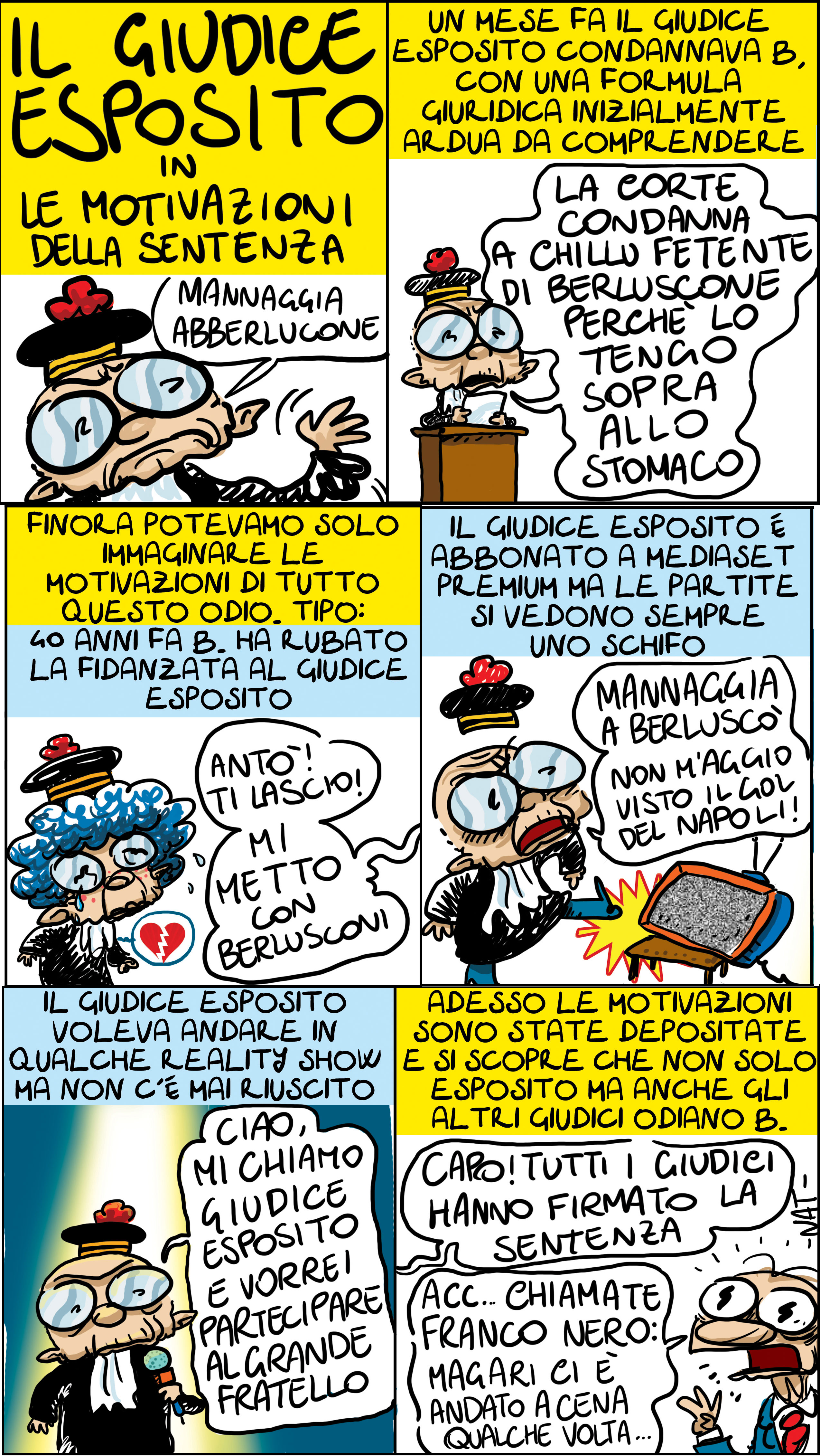 Mi spiego: abbiamo scoperto in questi giorni – grazie a Il Giornale di Sallusti – che il noto magistrato dal vago accento campano, colpevole di aver condannato Silvio Berlusconi, ama infilarsi a cene ma anche battesimi, compleanni, matrimoni, comunioni e cresime dove possibilmente vi siano attori o cantanti ormai tramontati. E abbiamo scoperto che – tra una bufala e un gamberetto – il suddetto Esposito si mette ad esternare contro il Cavalier Pregiudicato.